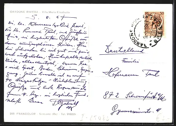 gelaufen 1967, Eckknick re. unten, guter Zustand
