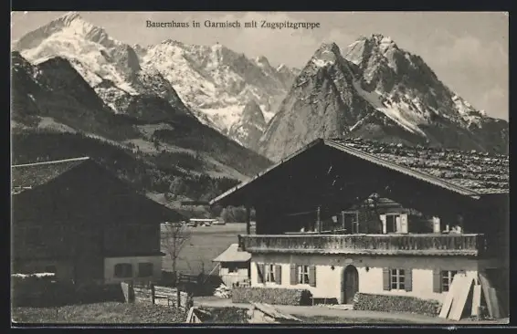 AK Garmisch, Bauernhaus mit Zugspitzgruppe