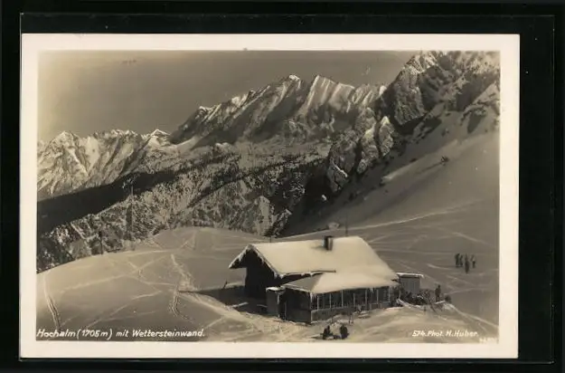 AK Garmisch, Berggasthaus Hochalm im Winter