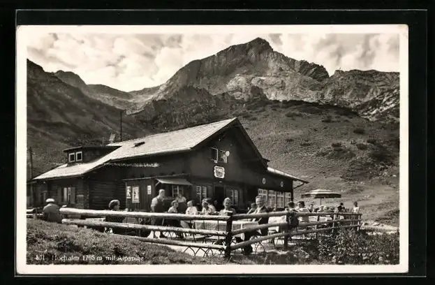 AK Garmisch, Gasthaus Hochalm mit Alpspitze