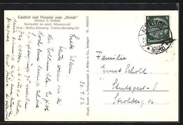 alte Ansichtskarte, gelaufen 1937, guter Zustand