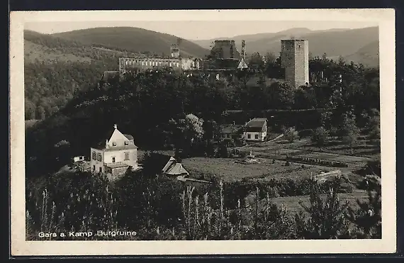 AK Gars am Kamp, Ortspartie mit Burgruine aus der Vogelschau