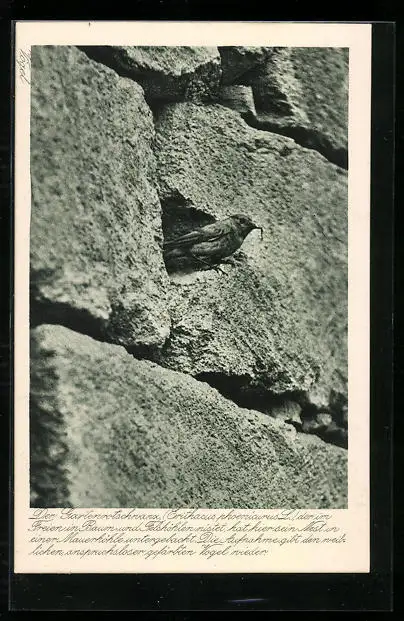 AK Gartenrotschwanz mit Wurm im Schnabel