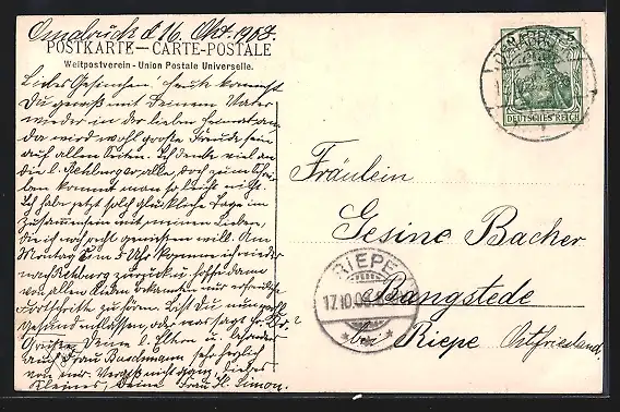 alte Ansichtskarte, gelaufen 1908, guter Zustand