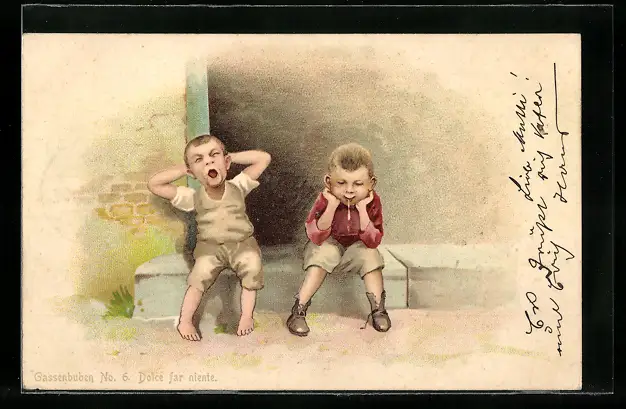 AK Gassenbuben, Dolce far niente, Zwei Jungen sitzen auf einer Stufe