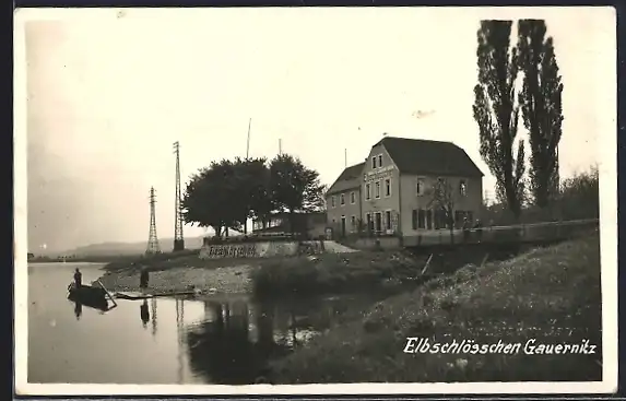 AK Gauernitz, Gasthaus Elbschlösschen direkt am Fluss