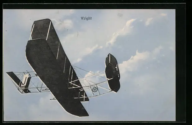 AK Gebrüder Wright-Flugzeug in der Luft, Kennung J