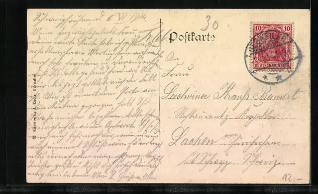 alte Ansichtskarte, gelaufen 1914, Abriebspuren links mittig, guter Zustand
