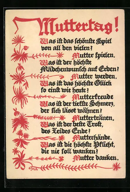 AK Gedicht zum Muttertag mit Blumen, 1931