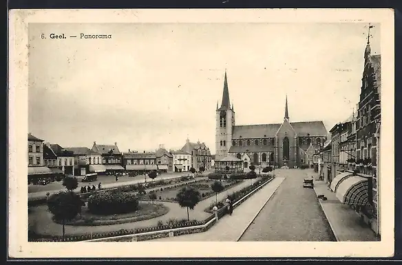 AK Geel, Panorama mit Kirche und Strassenpartie