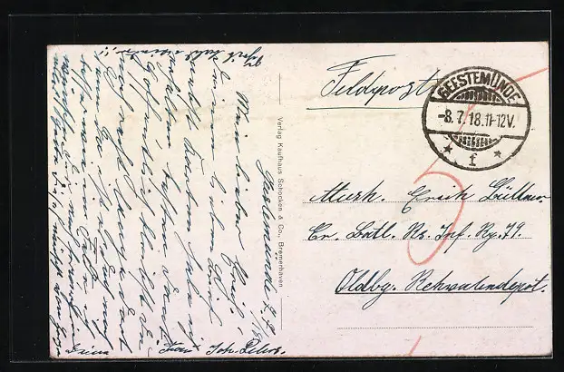 alte Ansichtskarte, gelaufen 1918, guter Zustand