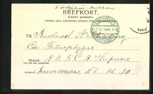 gelaufen 1904, Briefmarke entfernt, rückseitig Oberflächenschaden, guter Zustand