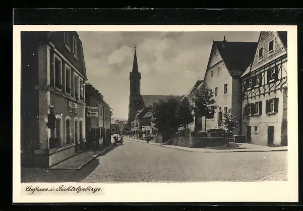 AK Gefrees, Partie aus dem Ort mit Kirche