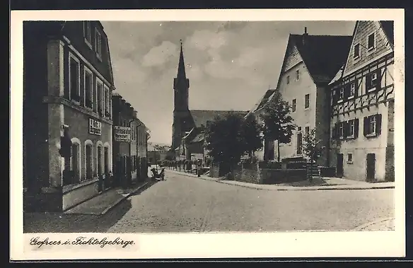 AK Gefrees, Partie aus dem Ort mit Kirche