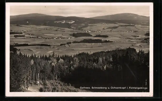 AK Gefrees i. Fichtelgebirge, Panorama mit Schneeberg und Ochsenkopf