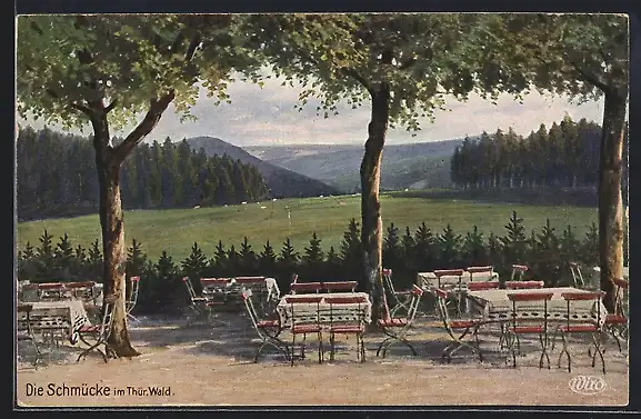 AK Gehlberg, Gasthaus die Schmücke, Terrasse