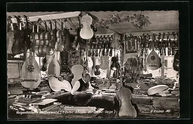 AK Geigenbauer von Mittenwald, J. Reiter, Schöpfer der Oktav-Geige