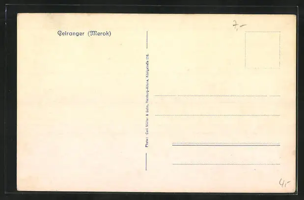 Personenbezogene Daten auf der Rückseite der Karte wurden durch blauen Textmarker unkenntlich gemacht. Die blauen Stellen sind auf die Vorderseite durchgeweicht und wirken sich negativ auf das Postkartenfoto aus