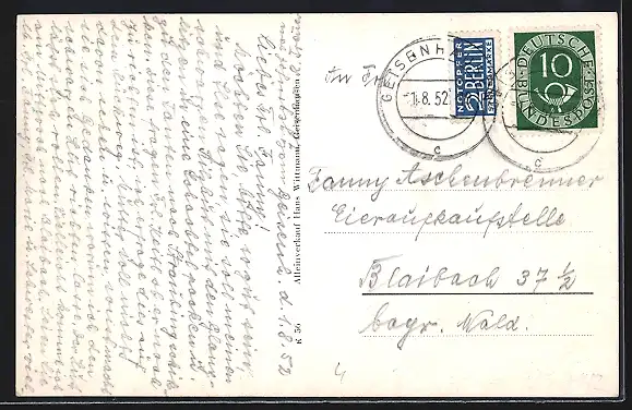 alte Ansichtskarte, gelaufen 1952, guter Zustand