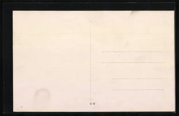 Personenbezogene Daten auf der Rückseite der Karte wurden durch blauen Textmarker unkenntlich gemacht. Die blauen Stellen sind auf die Vorderseite durchgeweicht und wirken sich negativ auf das Postkartenfoto aus