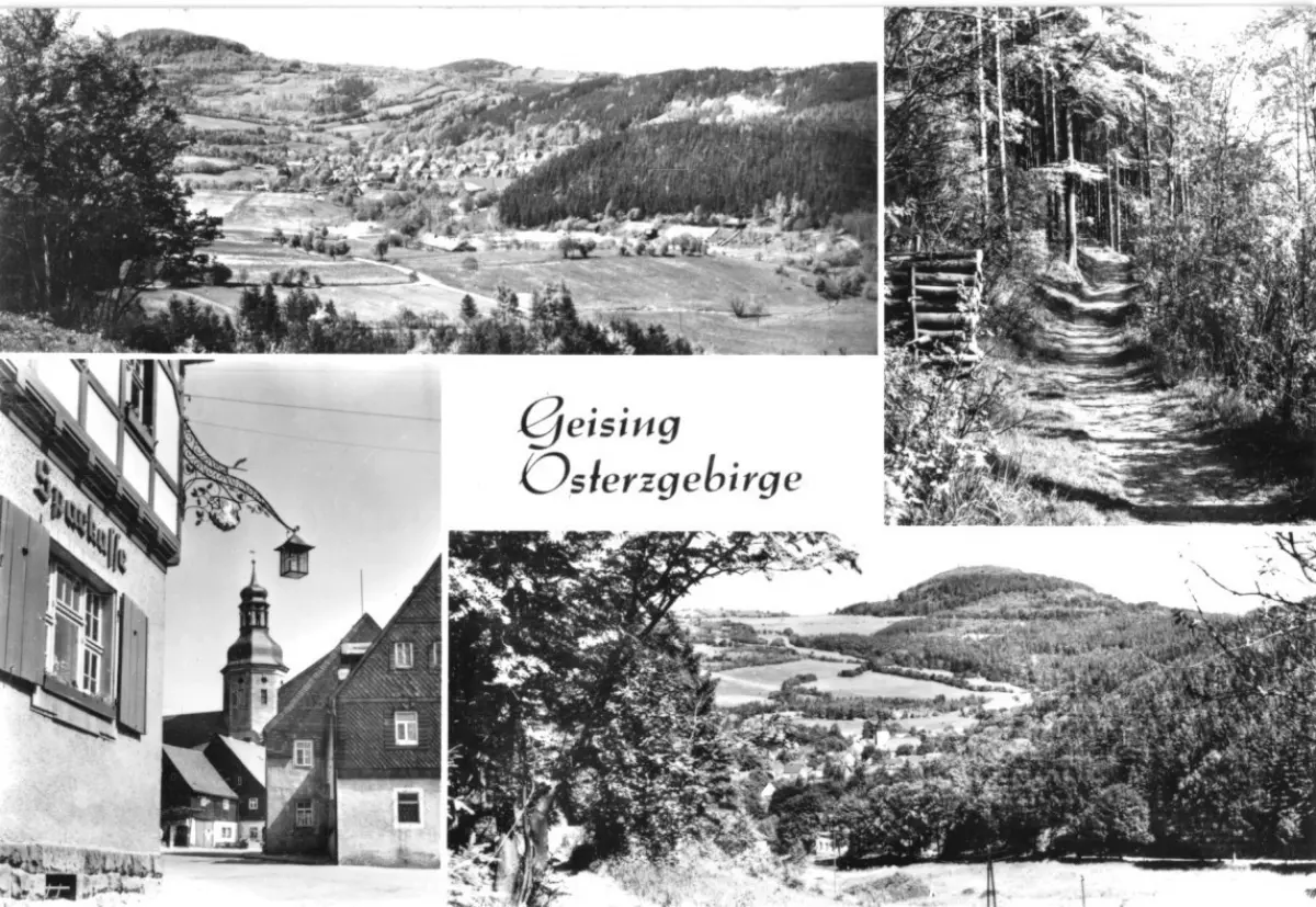 Ansichtskarte Geising Osterzgeb. vier Abb. Erhaltung I-II postalisch gelaufen, gestempelt: Geising, 7.9.84 Druckvermerk: 1983 Herstellungsland: DDR Verlag: VEB-Foto-Verlag, 9658 Erlbach i. V. - 07 12 03 307