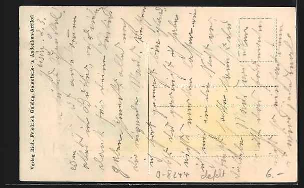 alte Ansichtskarte, ungelaufen, Rückseite beschrieben, Papierreste oben li., guter Zustand