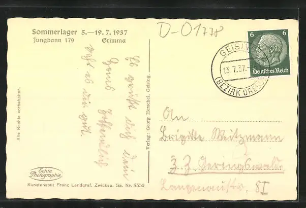 alte Ansichtskarte, gelaufen 1937, guter Zustand