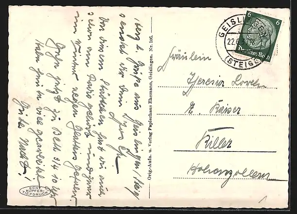 alte Ansichtskarte, gelaufen 1937, guter Zustand