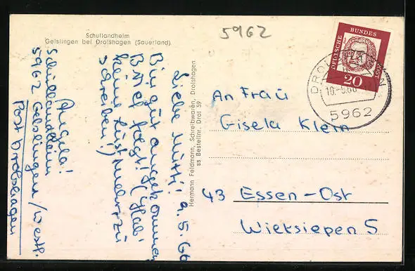 alte Ansichtskarte, gelaufen 1966, guter Zustand