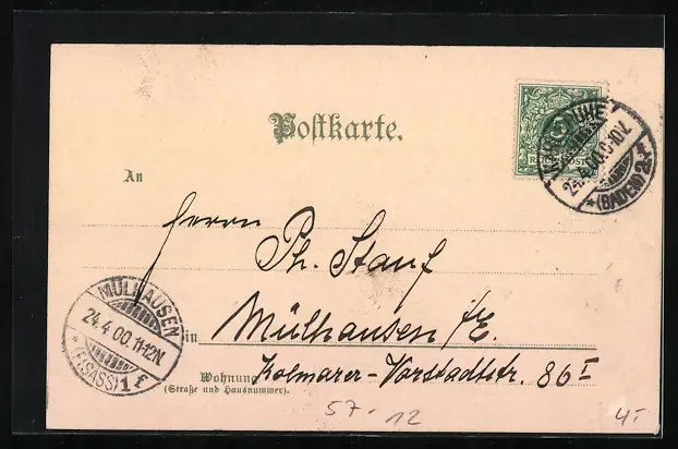 alte Ansichtskarte, gelaufen 1900, Eckknick li. unten, guter Zustand