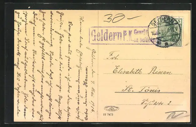 alte Ansichtskarte, gelaufen 1916, Stempelspur, guter Zustand