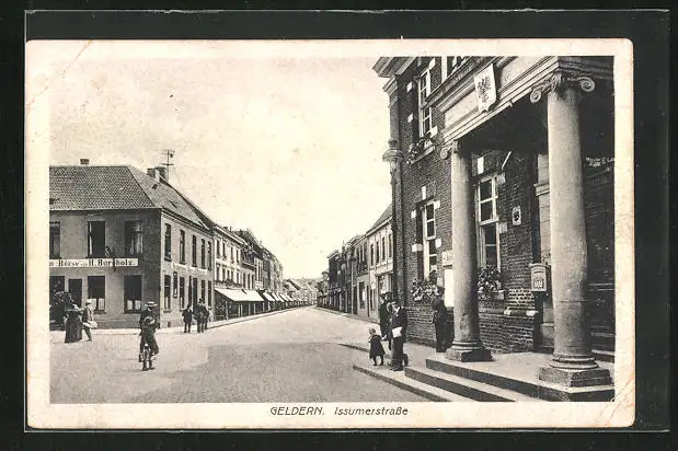 AK Geldern, Issumerstrasse mit Geschäft v. H. Burgholz