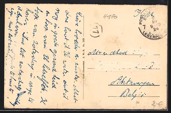 alte Ansichtskarte, gelaufen 1924, Eckknick unten re., guter Zustand