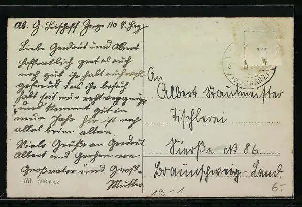 alte Ansichtskarte, gelaufen, Briefmarke entfernt, guter Zustand
