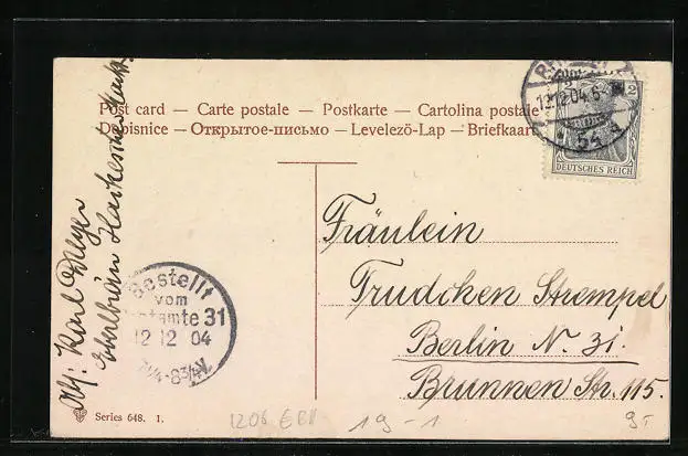 alte Ansichtskarte, gelaufen 1904, guter Zustand