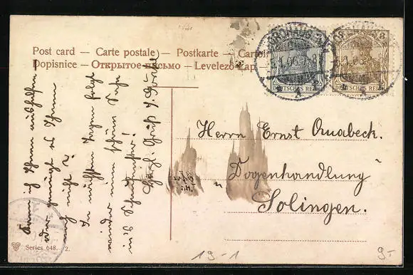 alte Ansichtskarte, gelaufen 1906, Eckknick re. unten, Stempelspur, guter Zustand