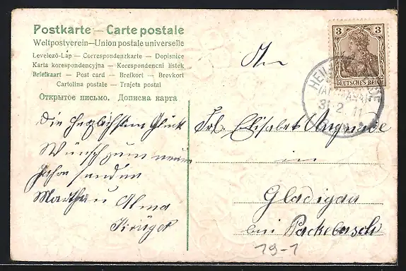 alte Ansichtskarte, gelaufen 1911, Bugspur li., guter Zustand