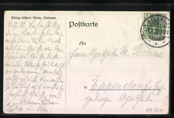 gelaufen 1912, Eckknick oben li., guter Zustand