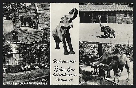 AK Gelsenkirchen-Bismarck, Ruhr-Zoo, Flamingos, Strauss