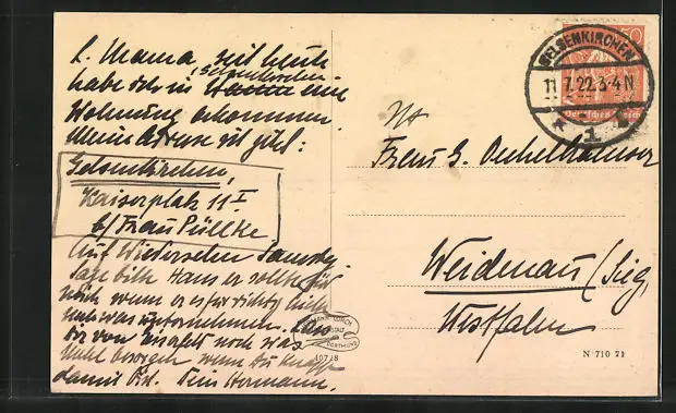 alte Ansichtskarte, gelaufen 1922, guter Zustand