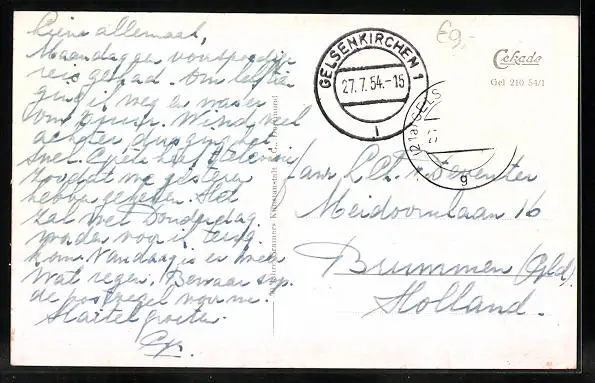 alte Ansichtskarte, gelaufen 1954, Briefmarke entfernt, guter Zustand
