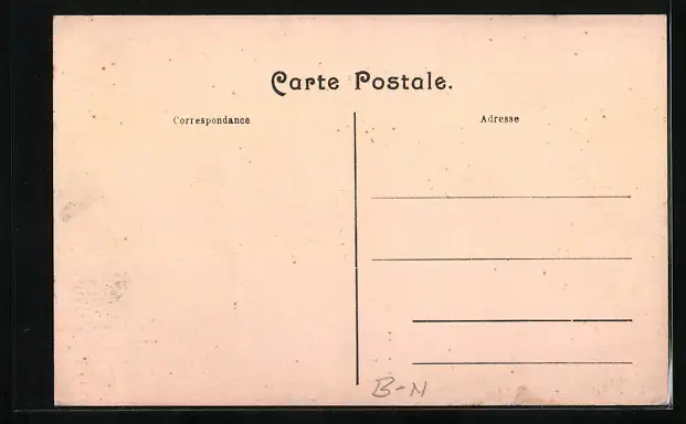 Personenbezogene Daten auf der Rückseite der Karte wurden durch blauen Textmarker unkenntlich gemacht. Die blauen Stellen sind auf die Vorderseite durchgeweicht und wirken sich negativ auf das Postkartenfoto aus