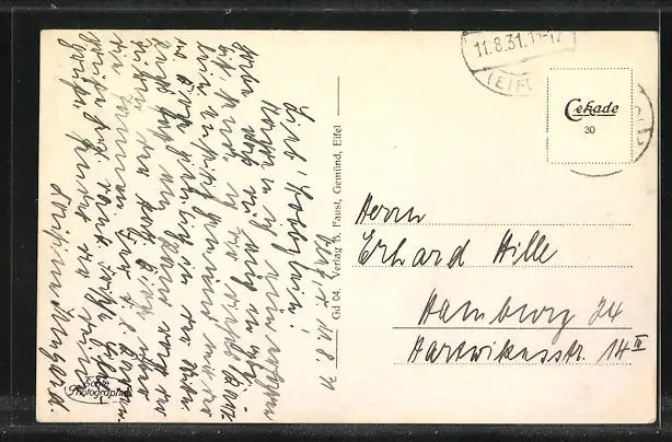alte Ansichtskarte, gelaufen 1931, Briefmarke entfernt, guter Zustand