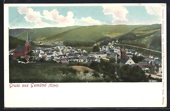 AK Gemünd / Eifel, Totalansicht mit Bergpanorama