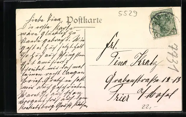 alte Ansichtskarte, gelaufen 1907, Eckknick re. oben, guter Zustand