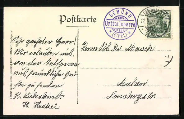 alte Ansichtskarte, gelaufen 1907, guter Zustand