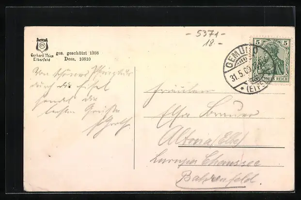 alte Ansichtskarte, gelaufen 1909, guter Zustand
