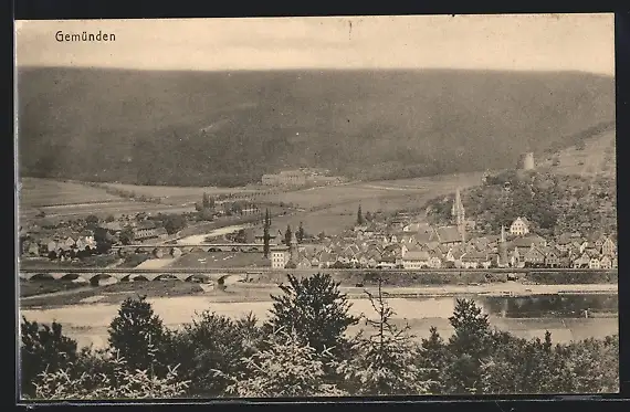 AK Gemünden, Totalansicht von einem Berg aus