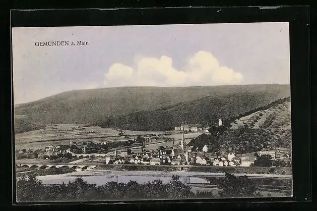 AK Gemünden a. Main, Ortsansicht aus der Vogelschau