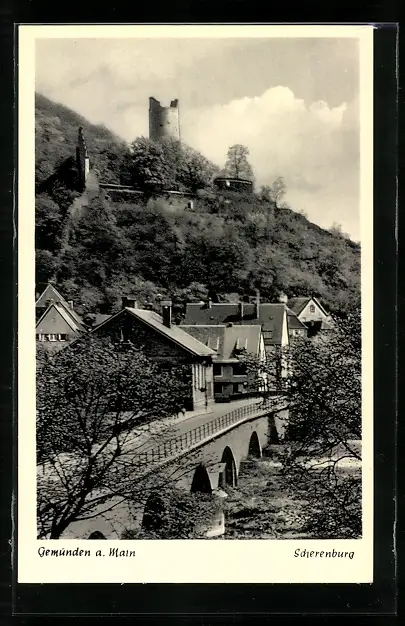 AK Gemünden a. Main, Ortspartie mit Scherenburg